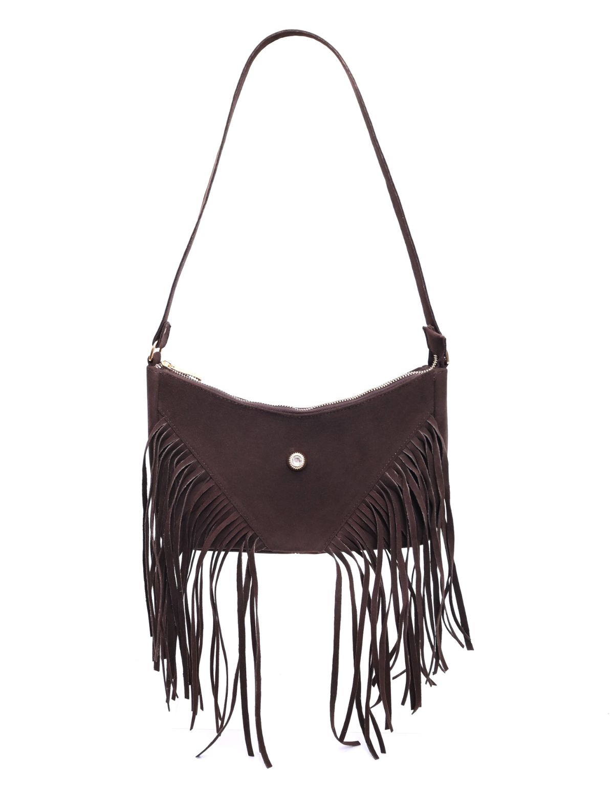 Bolsa Feminina Ombro Camurça Meia Lua com Franja